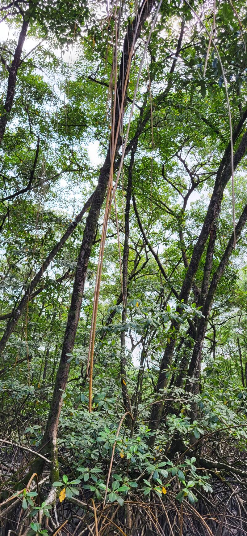 Faire la différence entre une liane et une racine, ici c'est une racine qui tombe du palétuvier, la liane elle monte !!